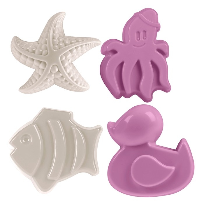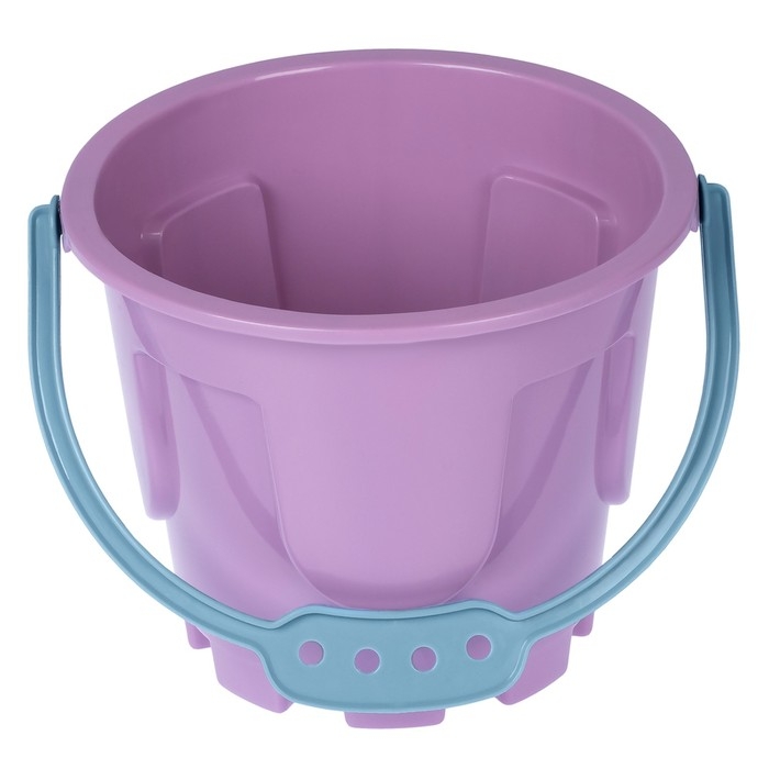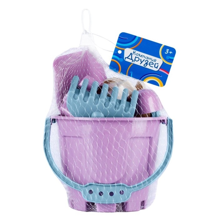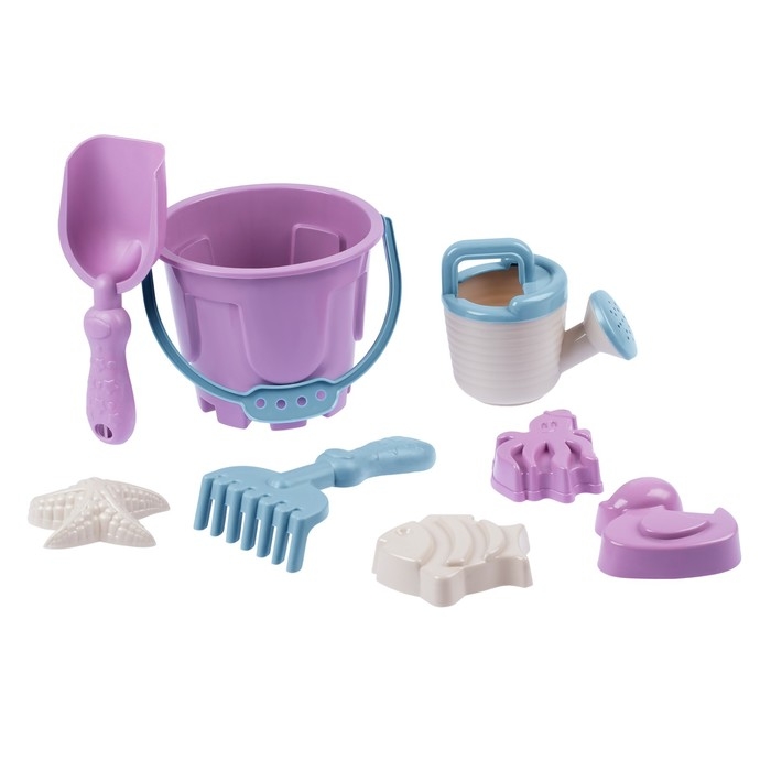Песочный набор: ведро 1,2 л, лопатка,грабли,4 формочки, лейка 0,2 л, бледно-розовый