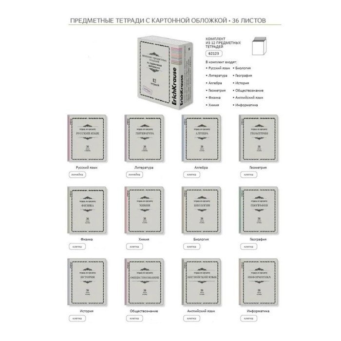 Комплект предметных тетрадей 36 листов, 12 штук, ErichKrause "Академкнига", мелованный картон, блок офсет 100% белизна, инфо-блок
