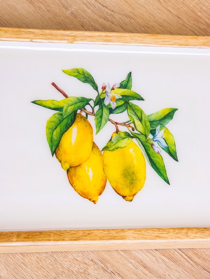 Блюдо прямоугольное "Лимоны" дерево манго 41х15 см