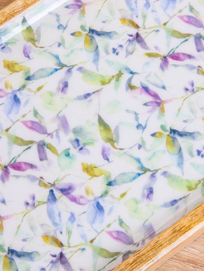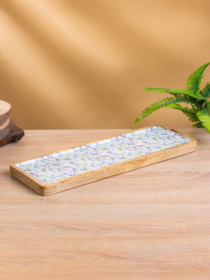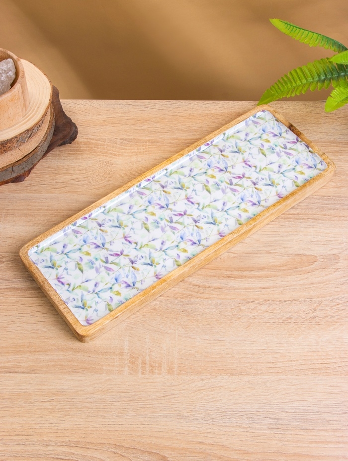Блюдо прямоугольное "Оттенки сирени" дерево манго 41х15 см