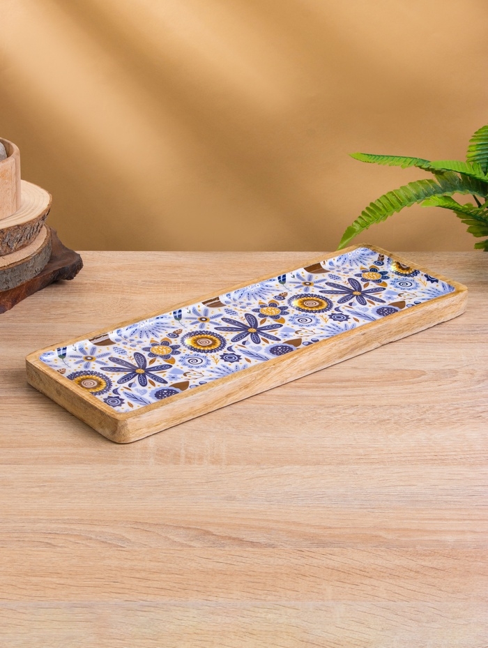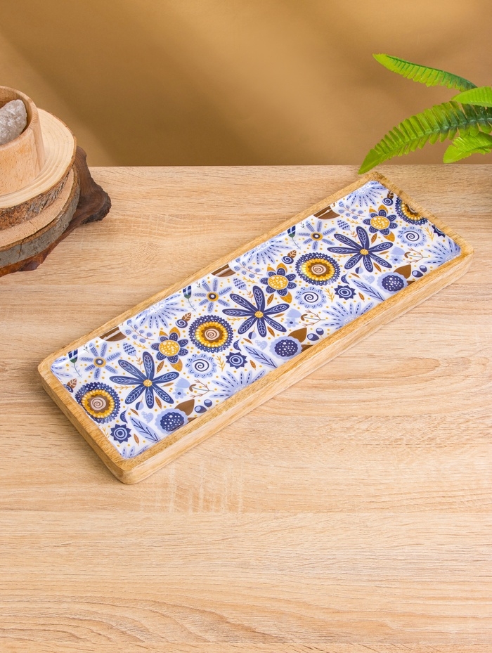 Блюдо прямоугольное "Васильки" дерево манго 41х15 см