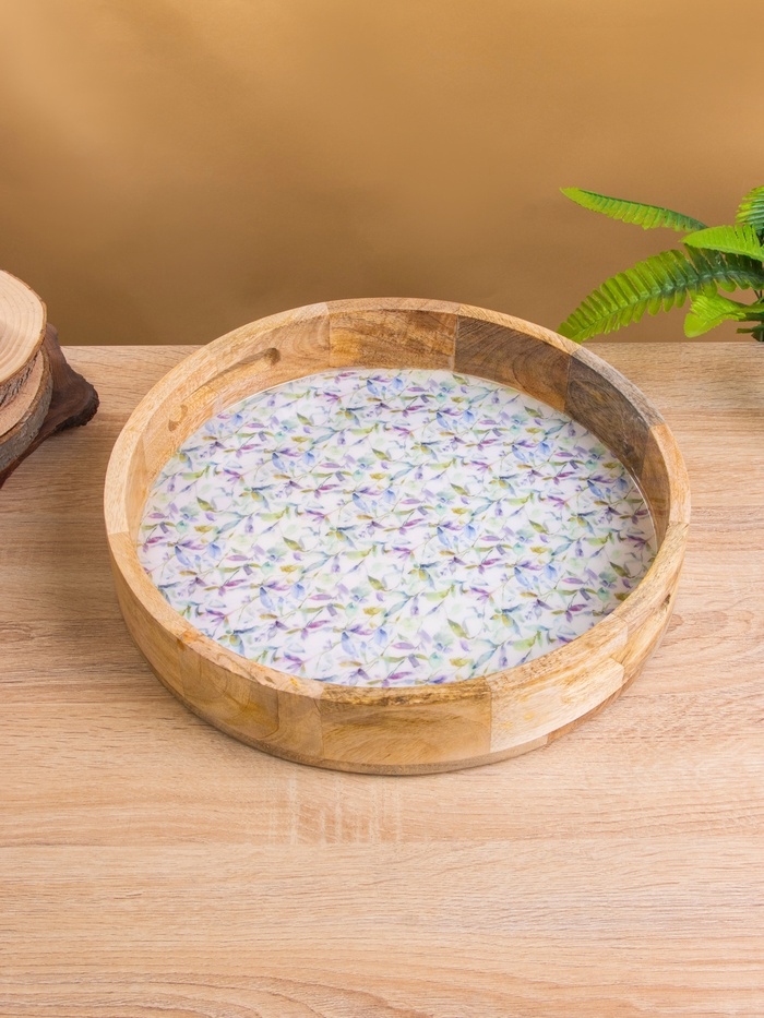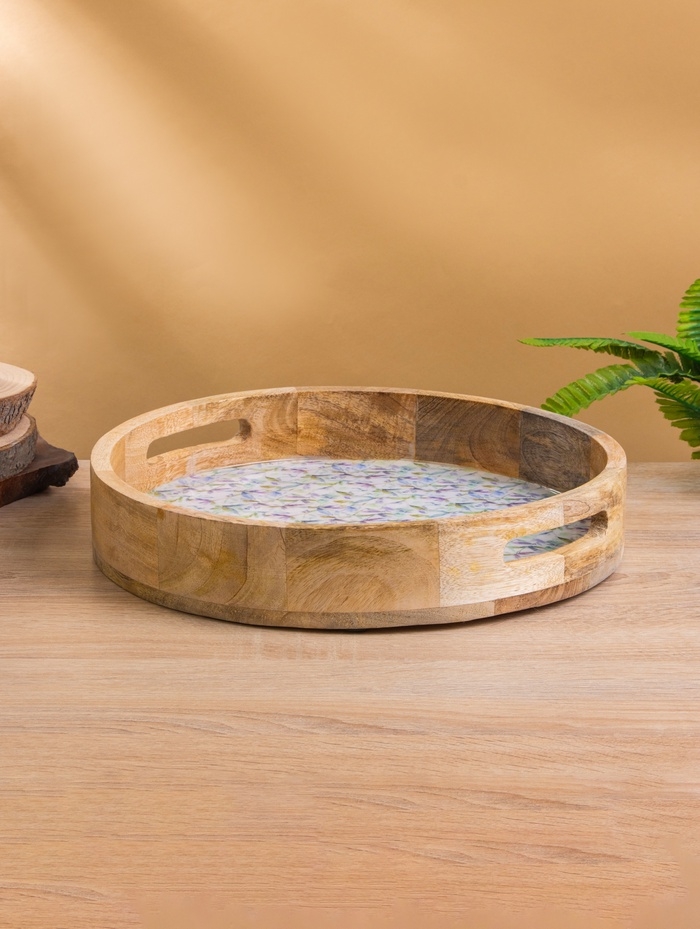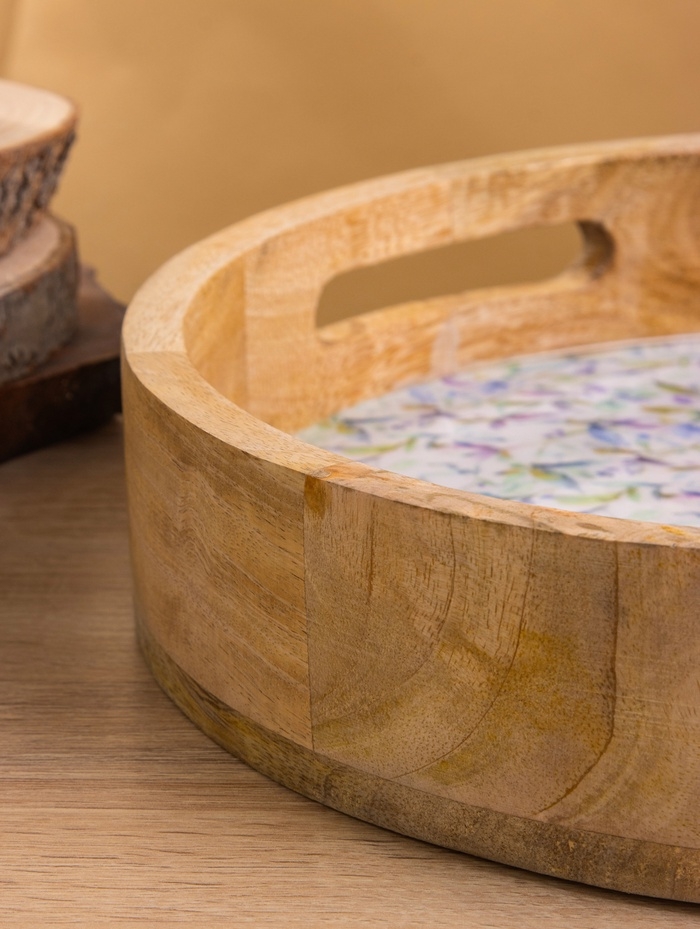 Поднос круглый с бортиками "Оттенки сирени" дерево манго 35х35х6,5 см