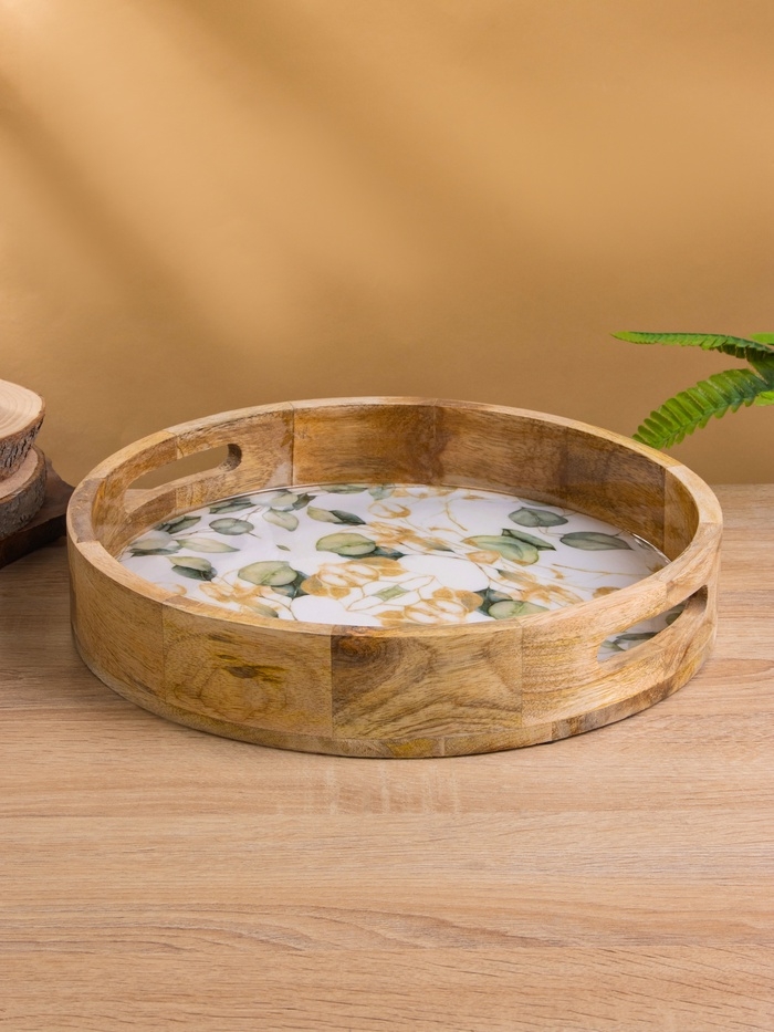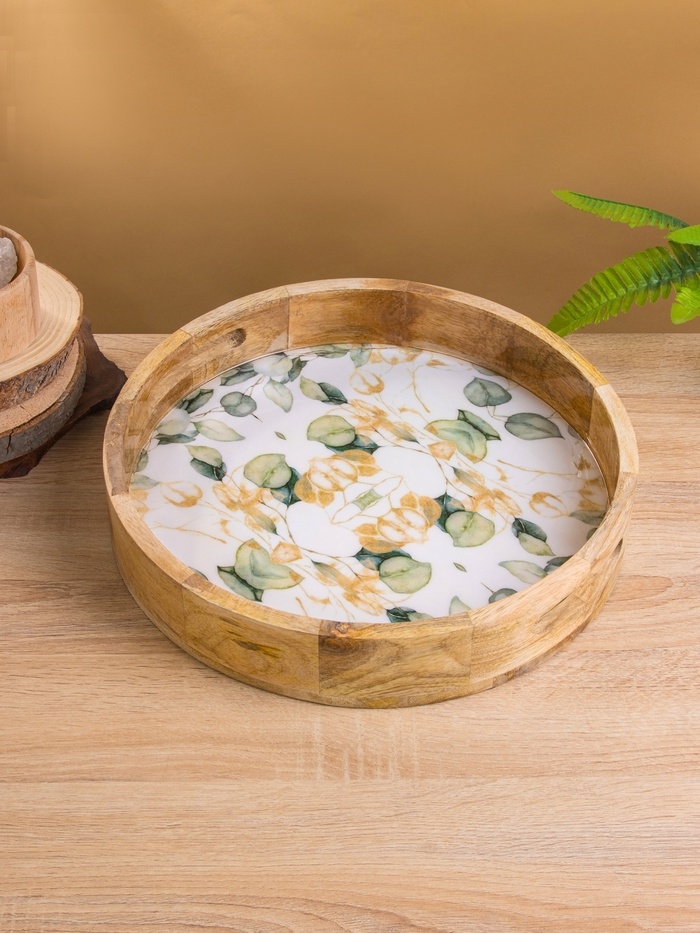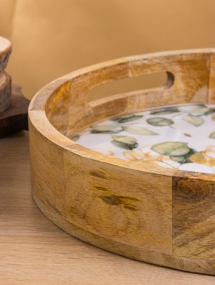 Поднос круглый с бортиками "Листья" дерево манго 35х35х6,5 см
