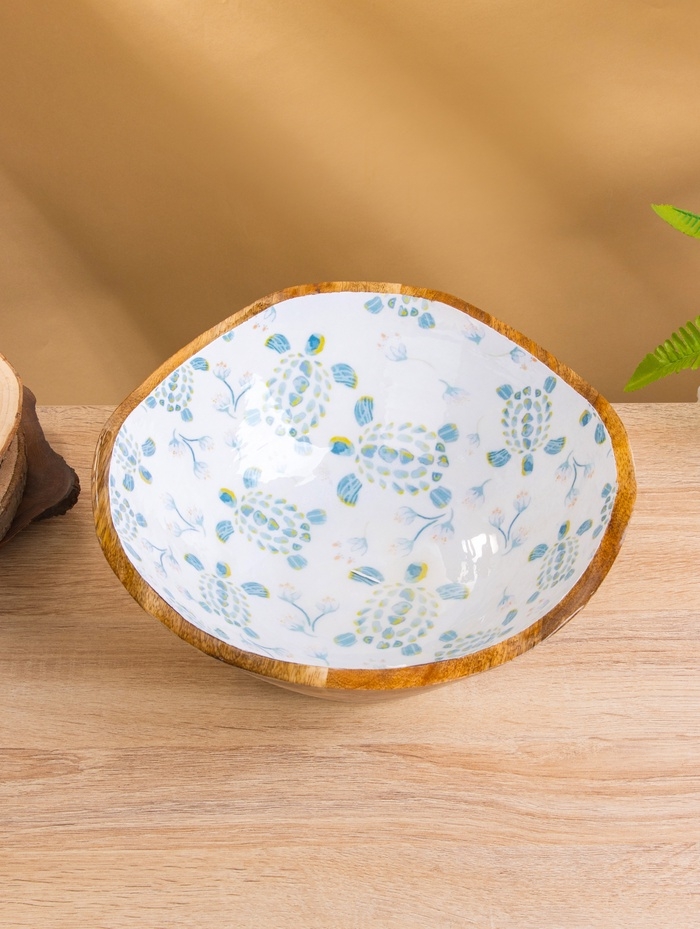 Салатник "Черепаха и цветы" дерево манго 29х29х11 см