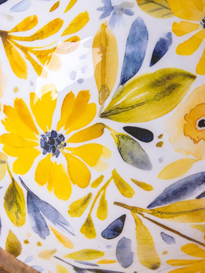 Салатник "Желтые и синие цветы" дерево манго 29х29х11 см