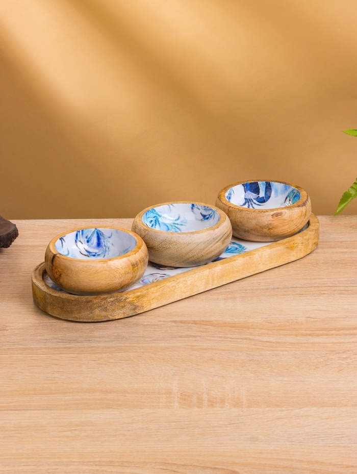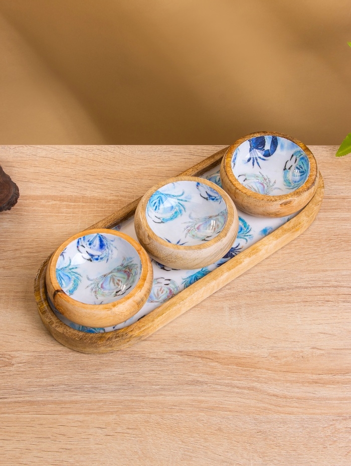 Набор розеток на подносе "Крабы" (3 шт) дерево манго 33,5х13х6,5 см