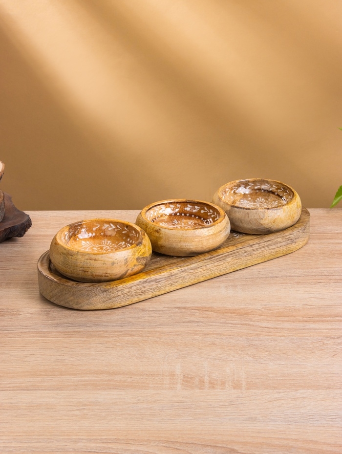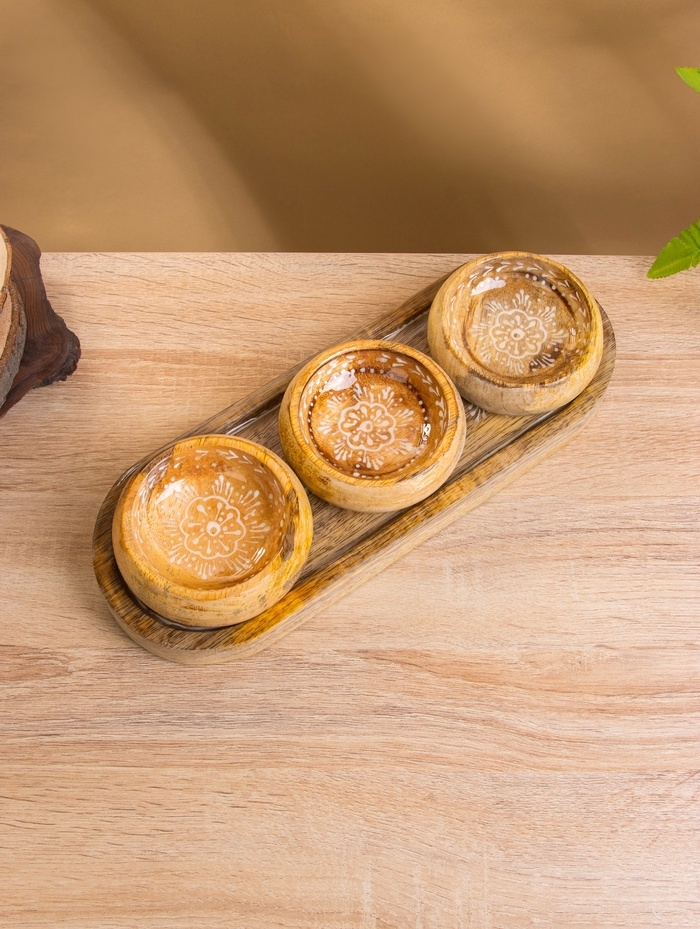 Набор розеток на подносе "Пряник" (3 шт) дерево манго 33,5х13х6,5 см