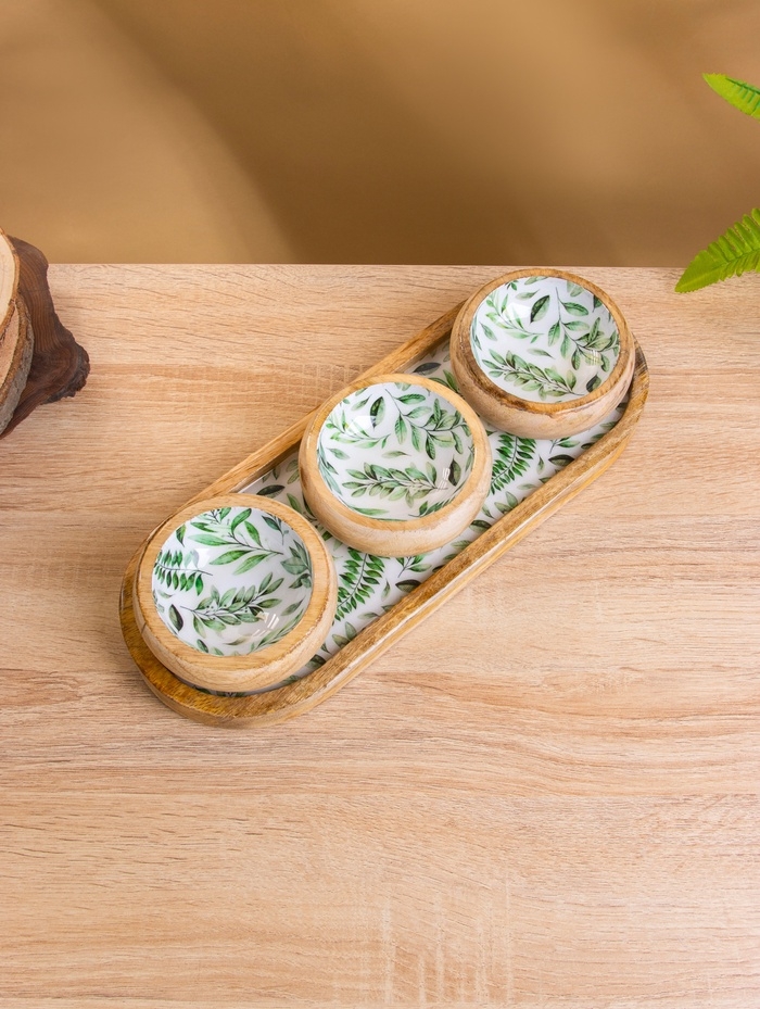 Набор розеток на подносе "Оливковая ветвь" (3 шт) дерево манго 33,5х13х6,5 см