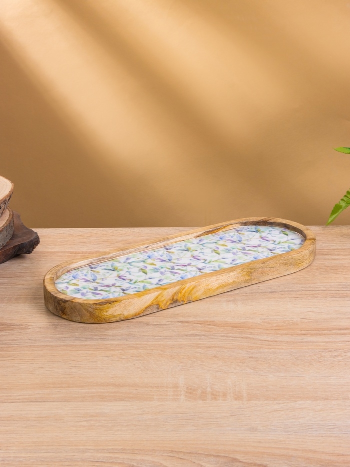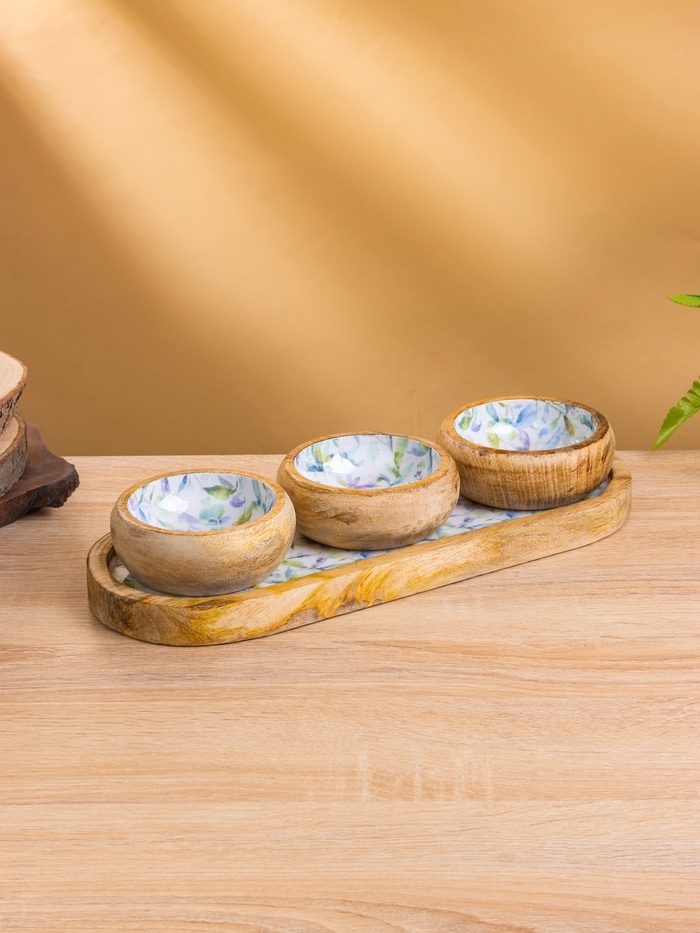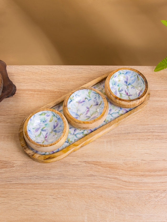 Набор розеток на подносе "Оттенки сирени" (3 шт) дерево манго 33,5х13х6,5 см