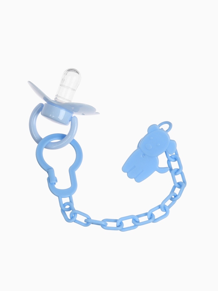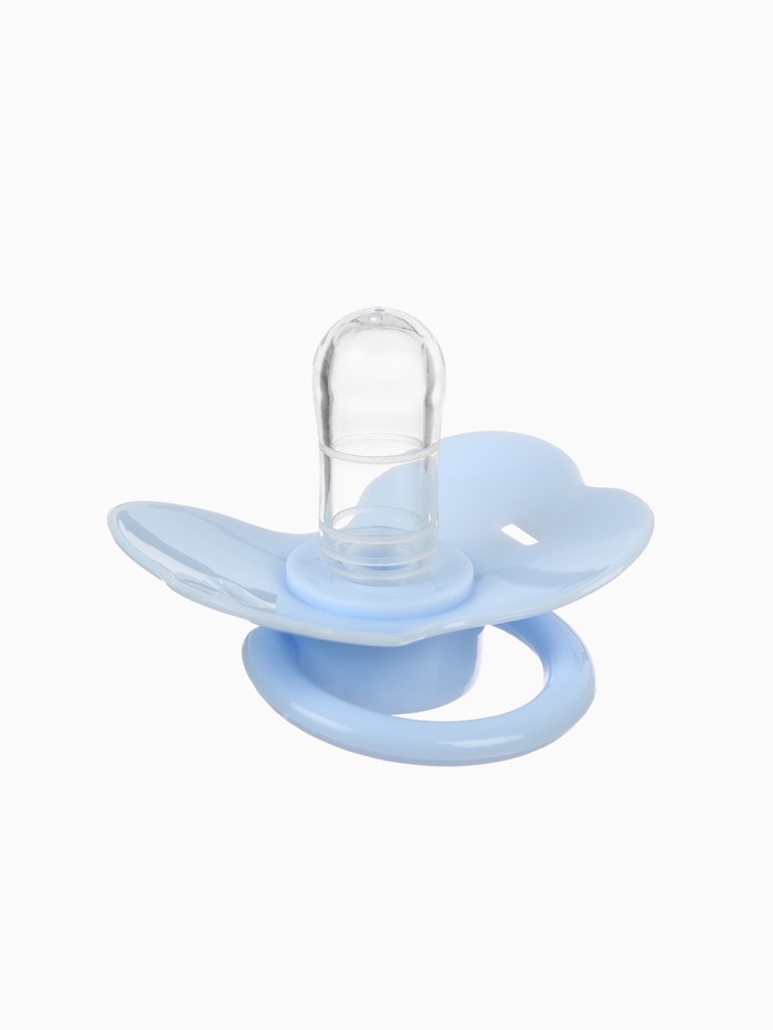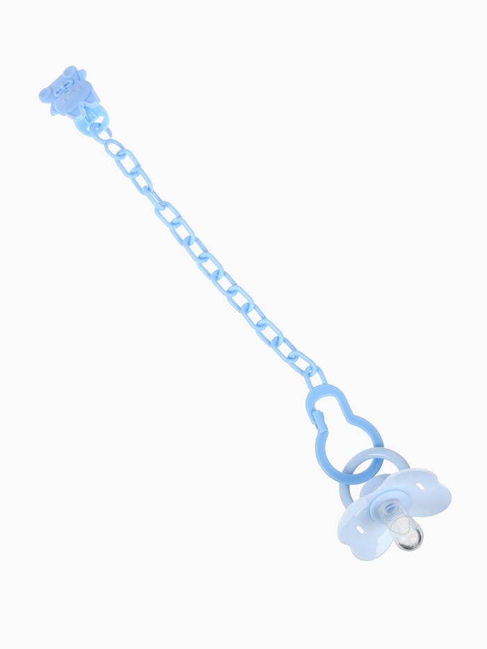 Пустышка классическая, с держателем, +0мес., цвет голубой