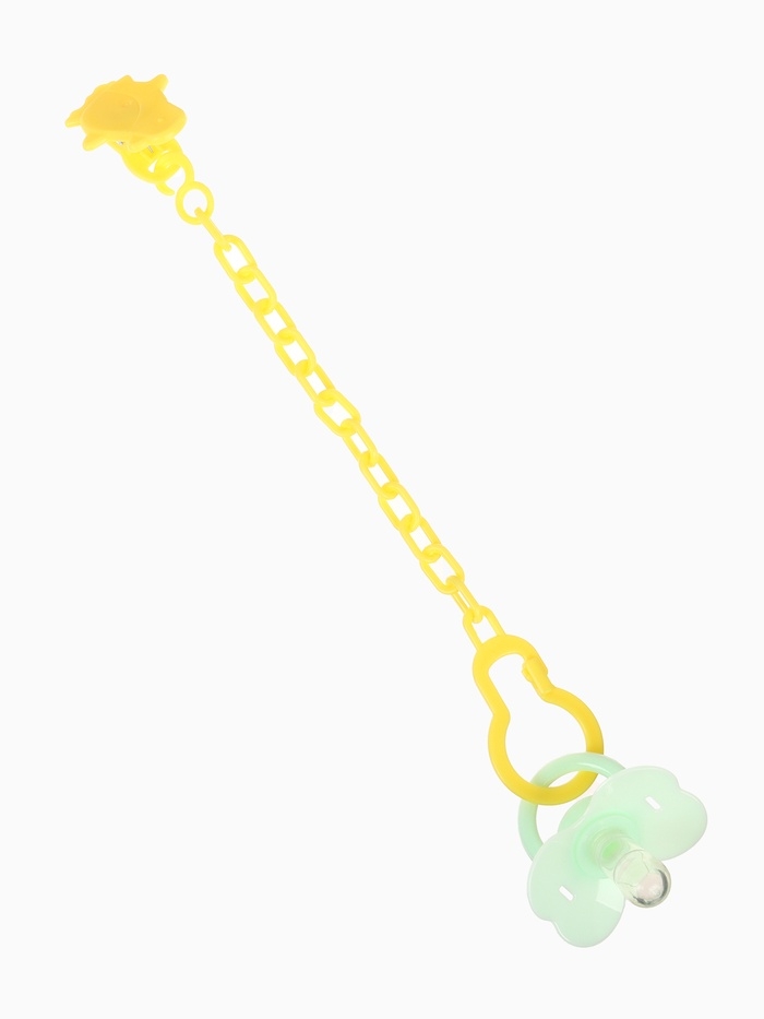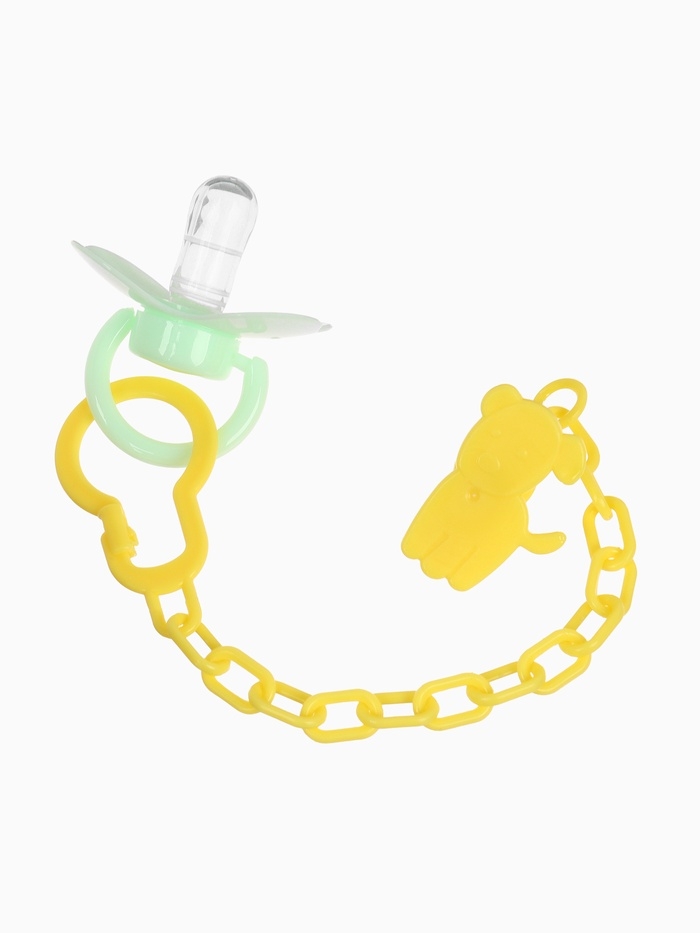 Пустышка классическая, с держателем, +0мес., цвет зеленый/желтый
