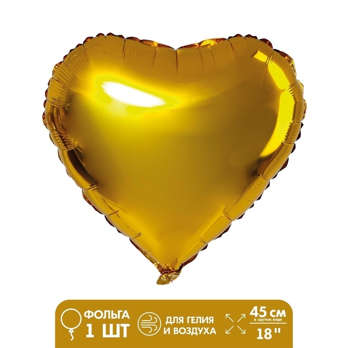 Воздушные шары фольгированные 18" «Сердце», 5 штук, золотые