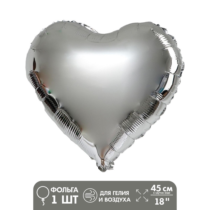 Воздушные шары фольгированные 18" «Сердце», 5 штук, серебряные