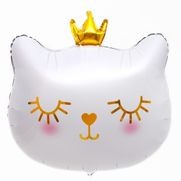 Воздушный шар фольгированный 24" «Милый котёнок с короной», фигура, белый