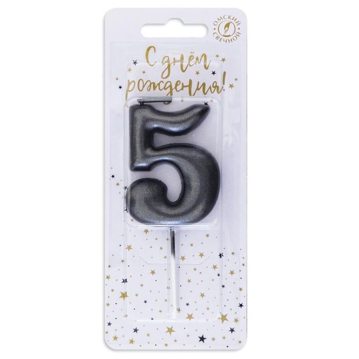 Свеча в торт "Мокрый асфальт", цифра 5