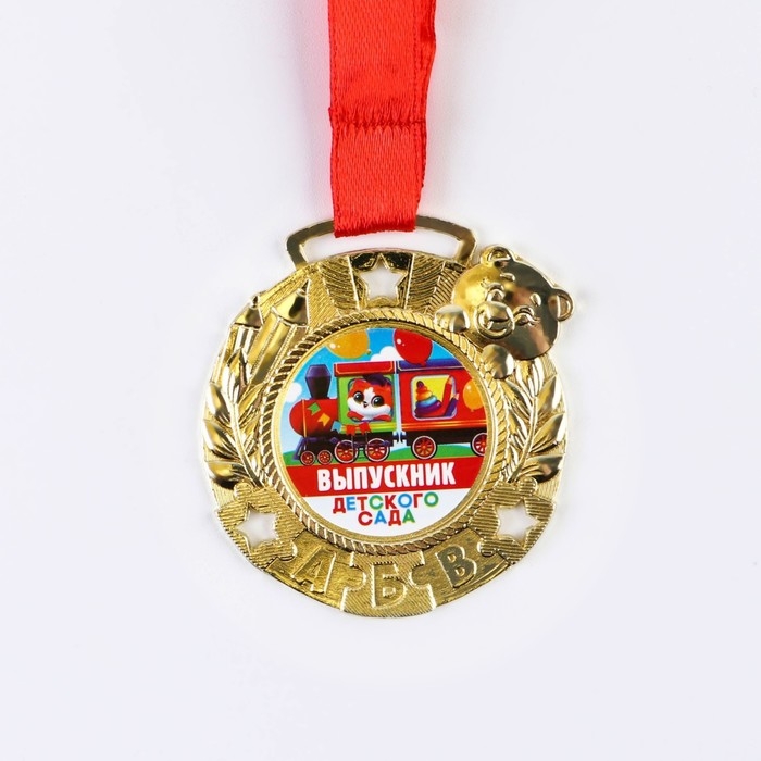 Медаль детская на Выпускной «Выпускник детского сада», на ленте, золото, металл, d = 5,5 см