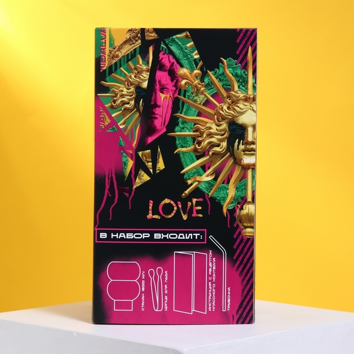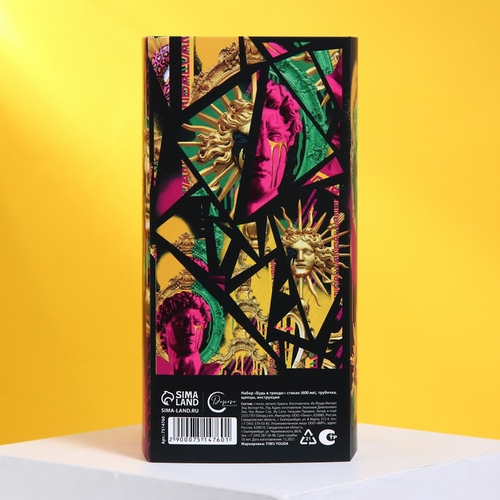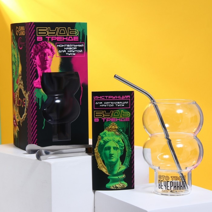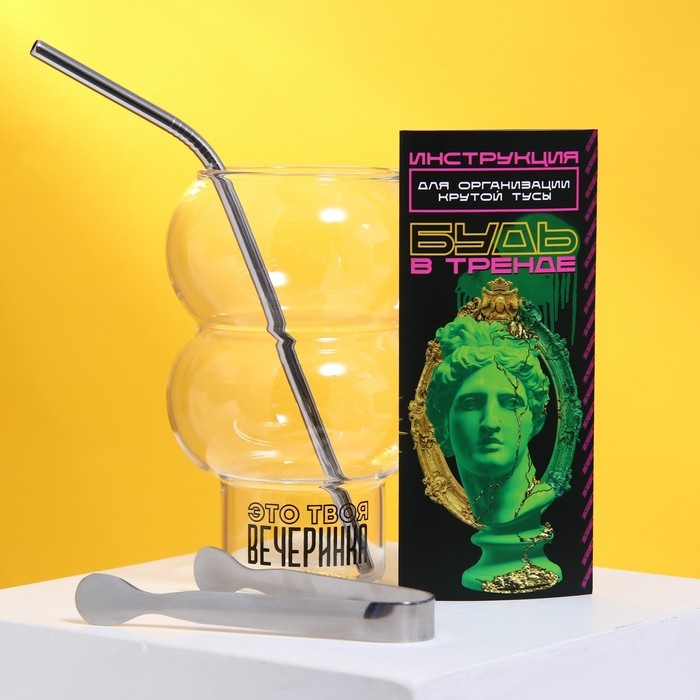 Стакан стеклянный «Будь в тренде», трубочка, щипцы, инструкция в комплекте