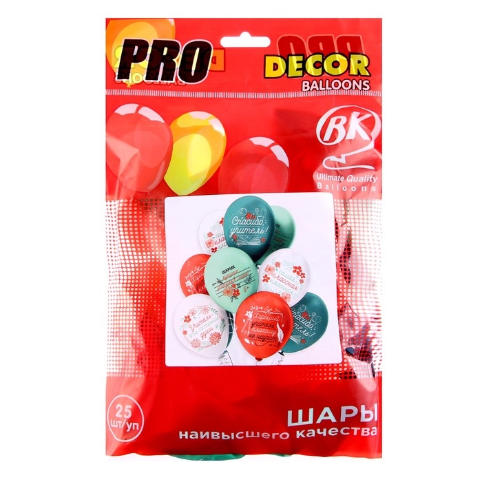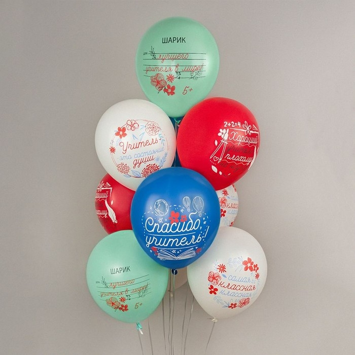 Шар латексный 12" «Шарики учителю», шелкография, 1-сторонний, набор 25 шт., МИКС