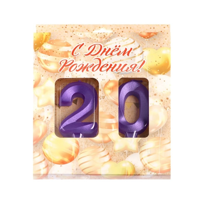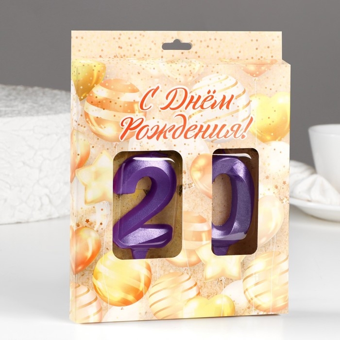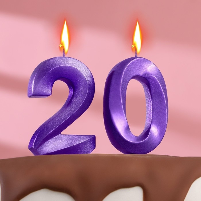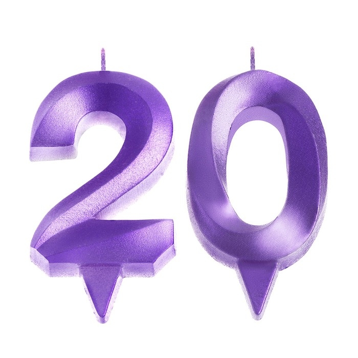 Свеча в торт юбилейная «Грань» (набор 2 в 1), цифра 20, фиолетовый металлик, 6.5 см