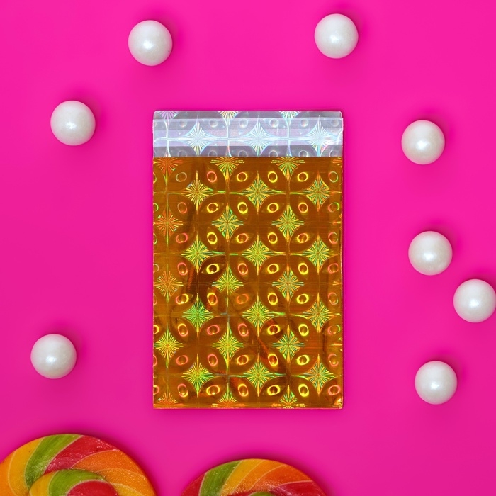 Пакет подарочный голографический с липкой лентой, "Шарм" МИКС 7,5x12+2 см набор 50шт