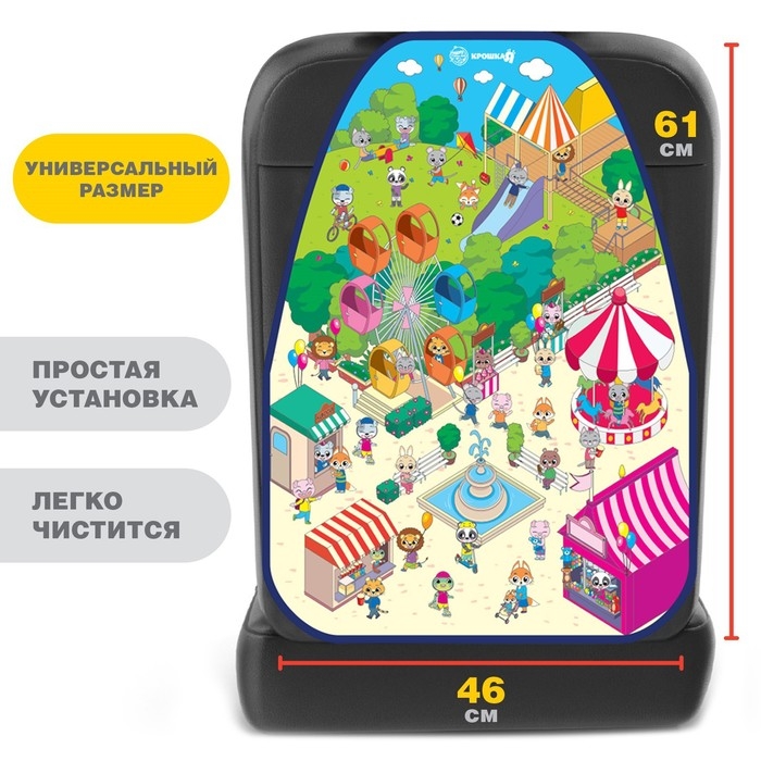 Яркий чехол ТМ «Крошка Я» сохранит в чистоте переднее сиденье автомобиля. Используйте это специальное приспособление, чтобы малыш не запачкал ботиночками спинку кресла.