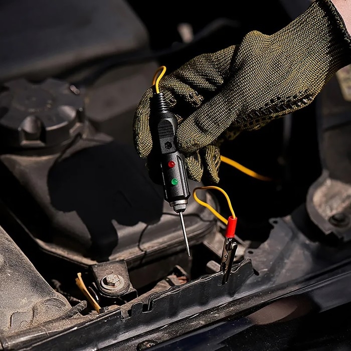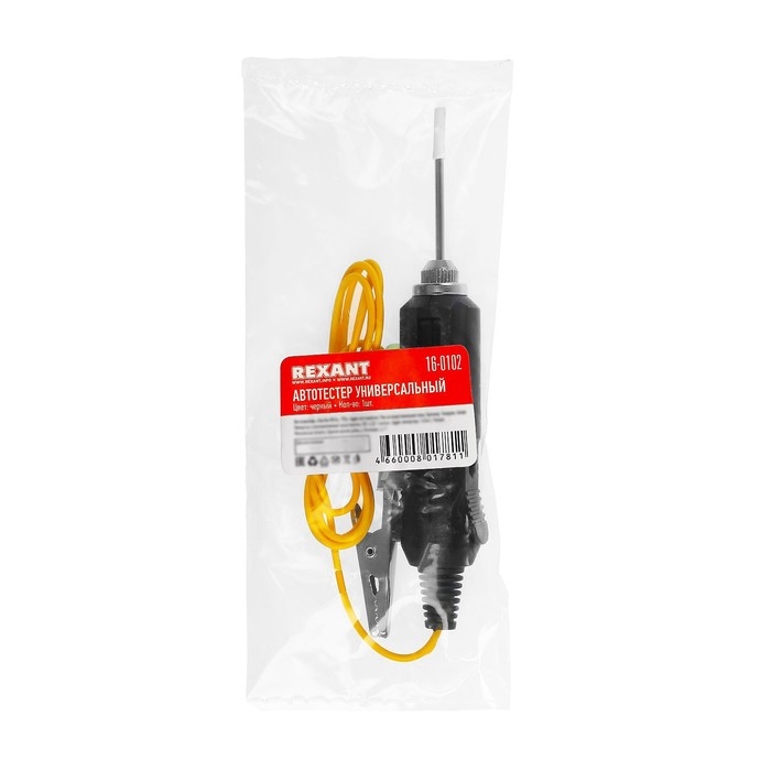 Универсальный автотестер REXANT со звуковой и световой индикациями предназначен для быстрой и эффективной диагностики электрооборудования автомобилей. Позволяет определить полярность напряжения (+/-), выявить замыкание и обрыв проводки или проверить предохранители, лампочки и диоды. Тестер выполнен из ударопрочного ABS-пластика, имеет 2 световых индикатора зеленого и красного цветов, металлический щуп. Изделие снабжено проводом с зажимом типа «крокодил». Устройство работает от 3 батареек типа LR41 (установлены в прибор).