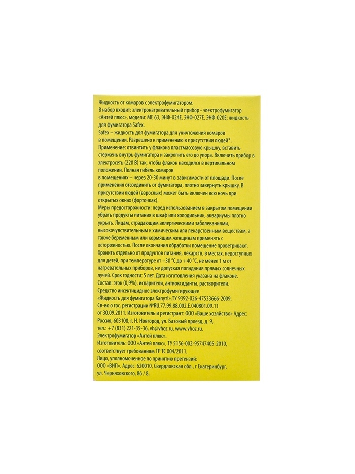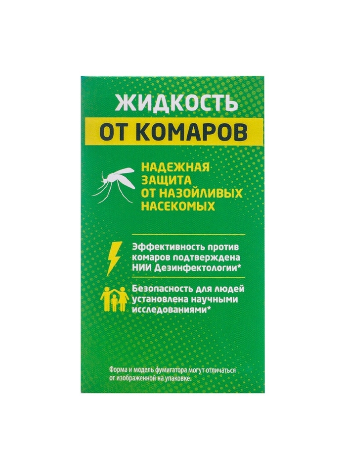 Жидкость для фумигатора, для уничтожения комаров в помещении. Разрешено к применению в присутствии людей.