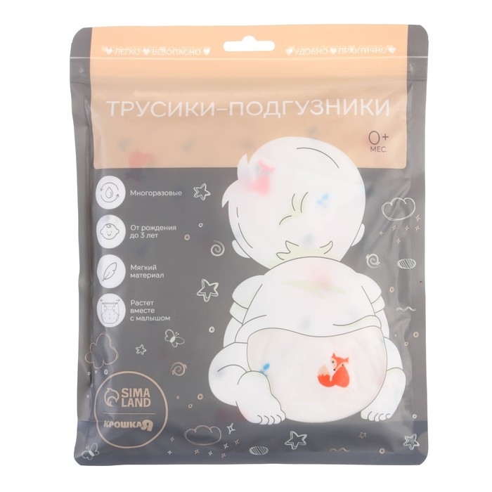 Многоразовый подгузник «Звезды», 3-15 кг, цвет белый, Крошка Я