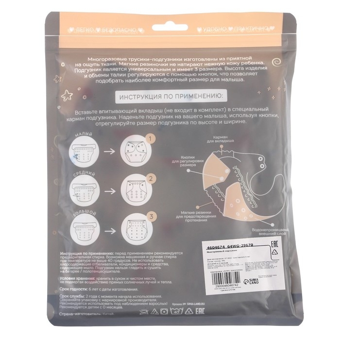 • Размер подгузника универсальный, подходит для детей от 3 до 15 кг, от рождения до 3 лет;