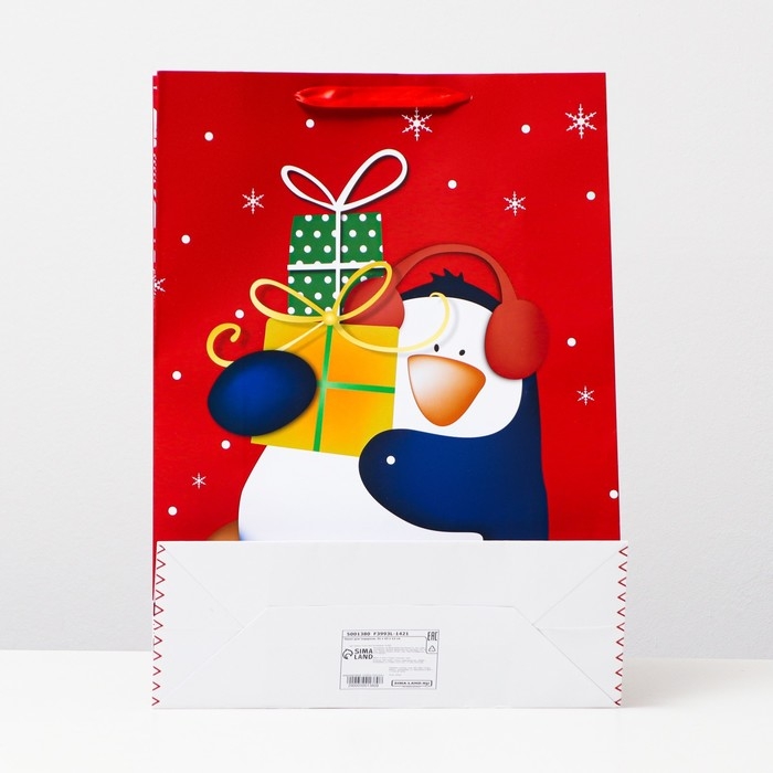 Пакет ламинированный "Пингвин с подарками", 31 x 42 x 12 см