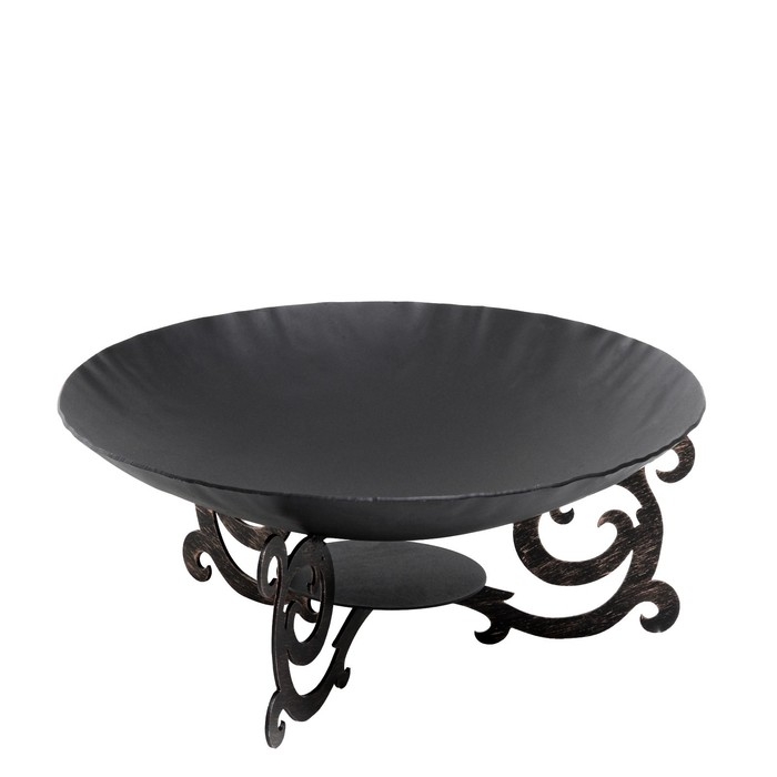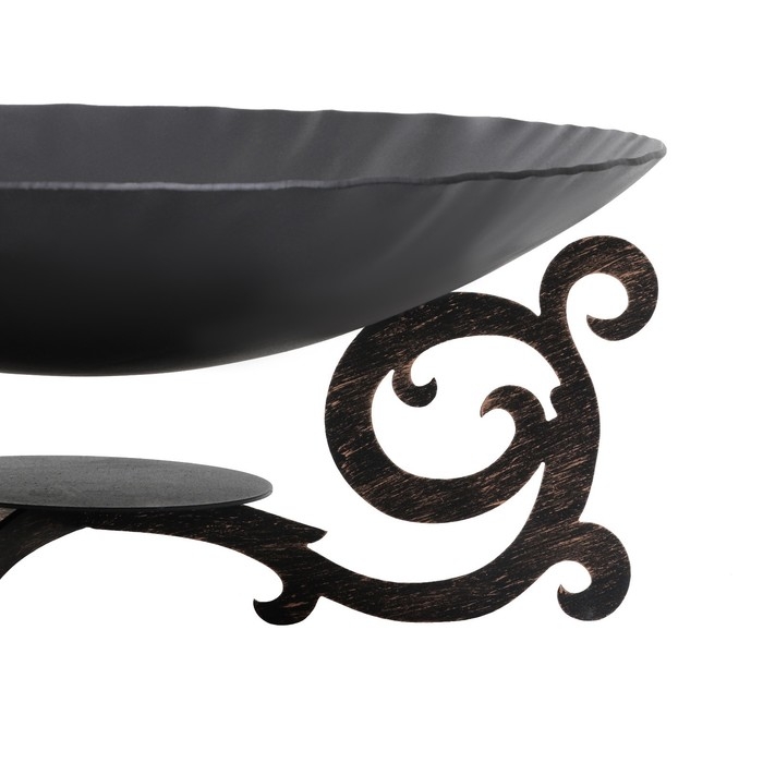 Костровая чаша “Рим” изготовлена на плазменной резке. Служит уличным очагом для обогрева и созерцания огня во время посиделок на открытом воздухе. Удобно использовать на дачном участке для сжигания сухих веток и дальнейшего использования золы в качестве удобрения. Чаша покрашена термостойкой эмалью Certa черного цвета, ножки дополнительно покрыты патиной.