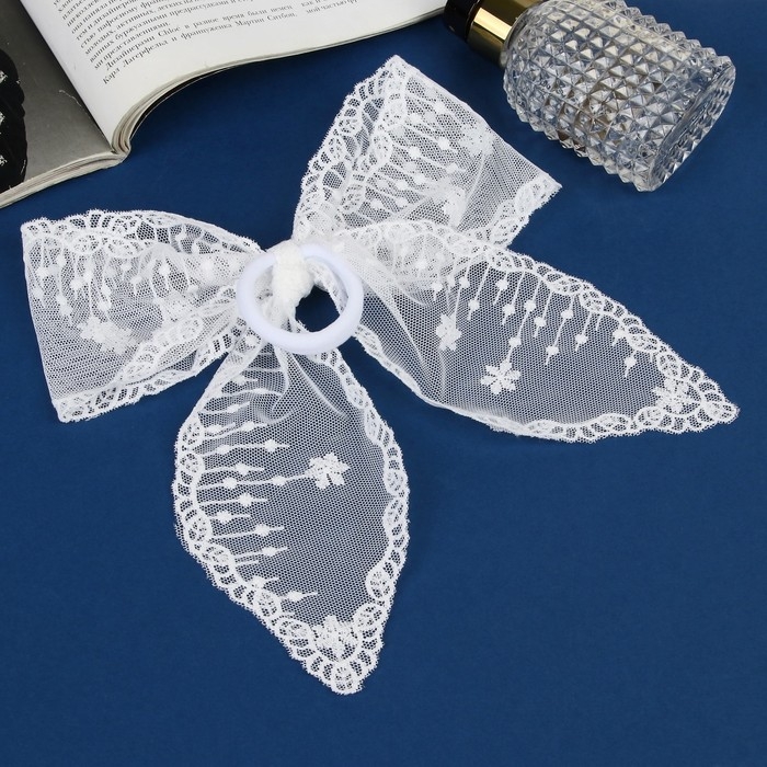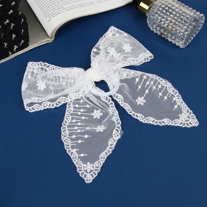 Резинка для волос бант "Школьница" галант кружево классик, 20х17 см, белый
