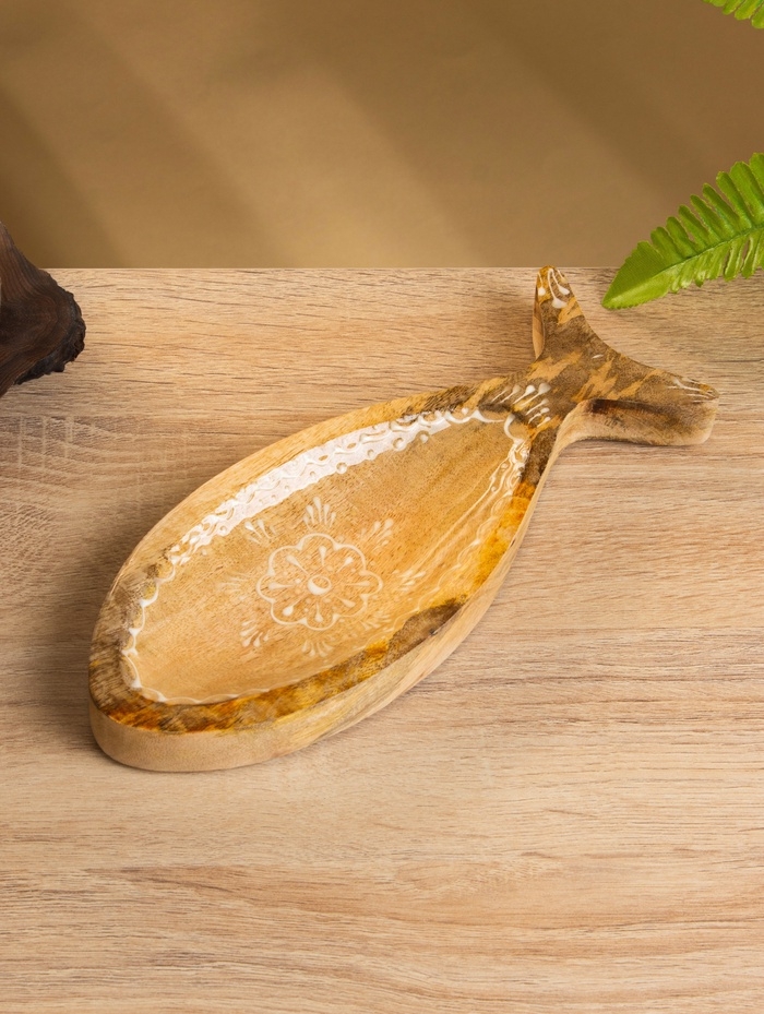 Блюдо в форме рыбки "Пряник" дерево манго 25,5х10х2 см
