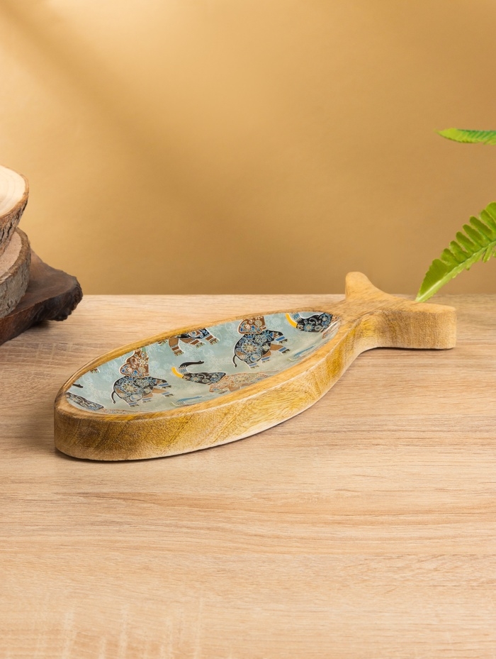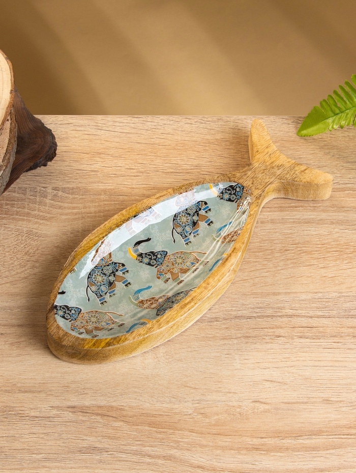Блюдо в форме рыбки "Мудрый слон" дерево манго 25,5х10х2 см