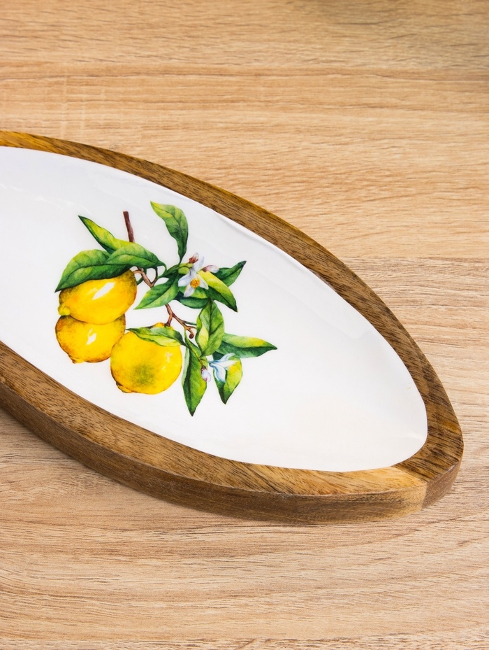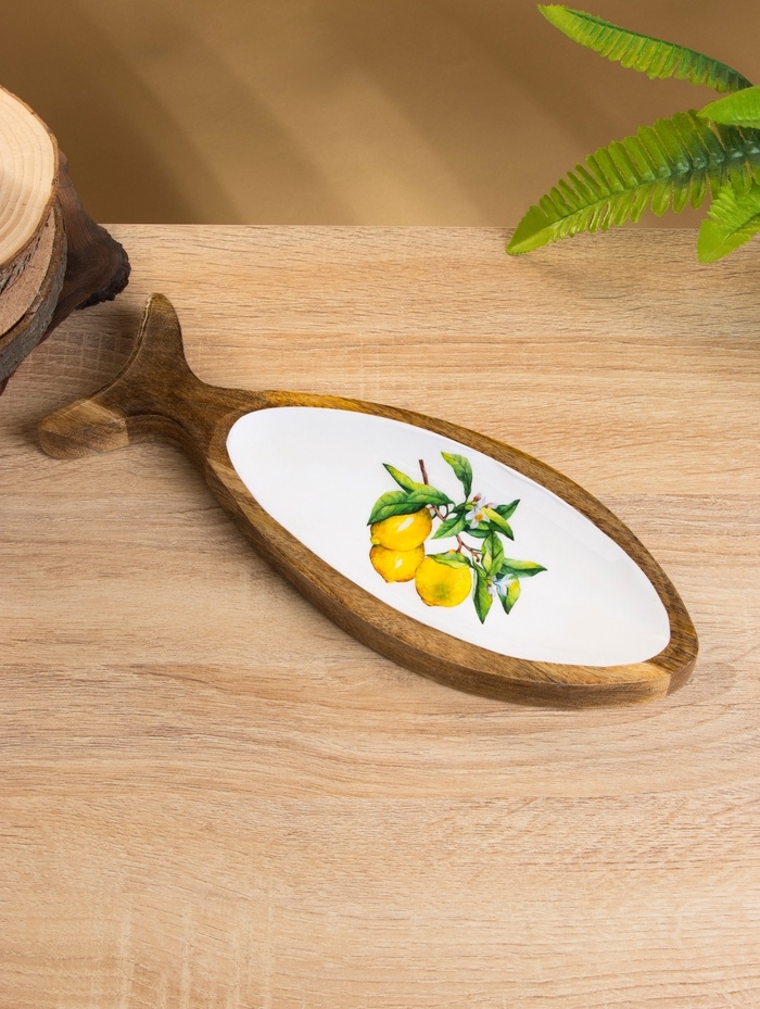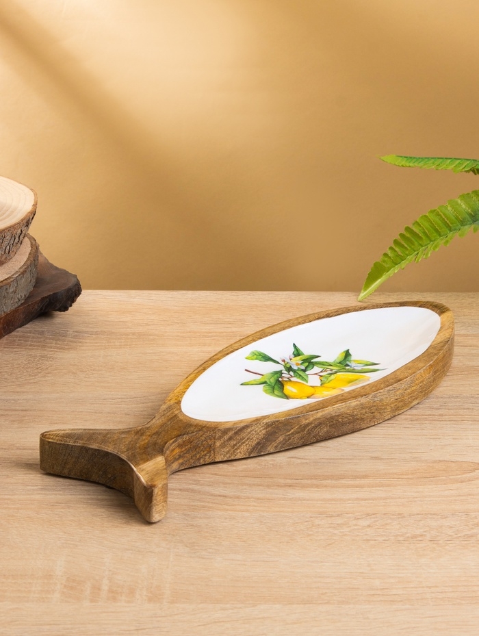 Блюдо в форме рыбки "Лимоны" дерево манго 32х11,5х2 см