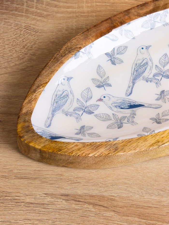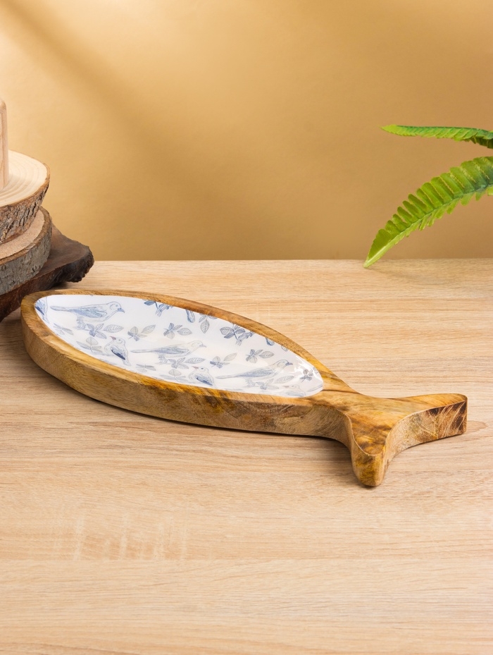 Блюдо в форме рыбки "Синие птицы" дерево манго 32х11,5х2 см