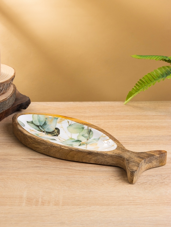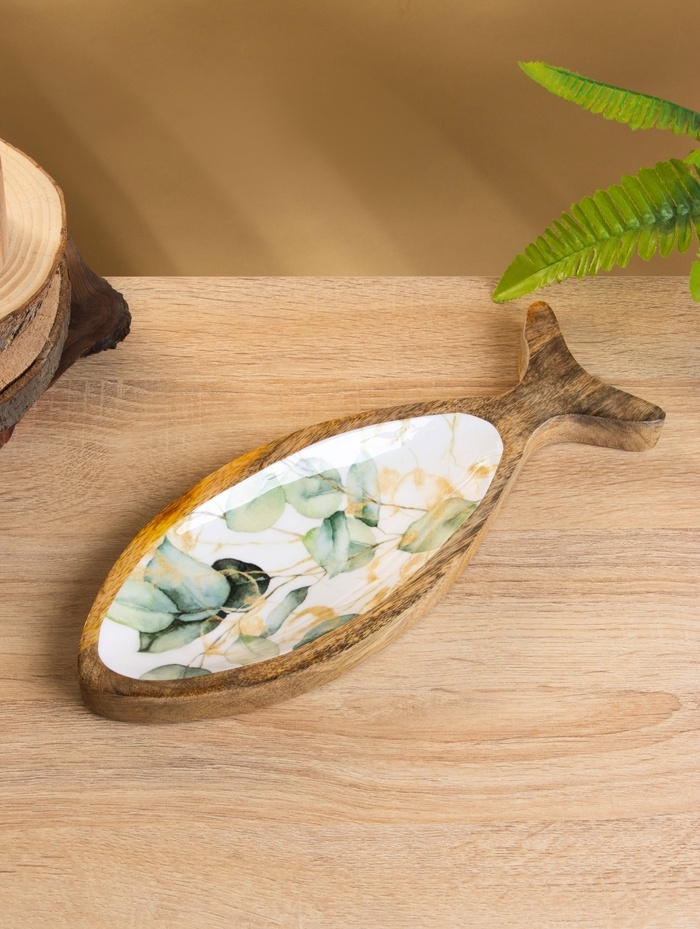 Блюдо в форме рыбки "Листья" дерево манго 32х11,5х2 см
