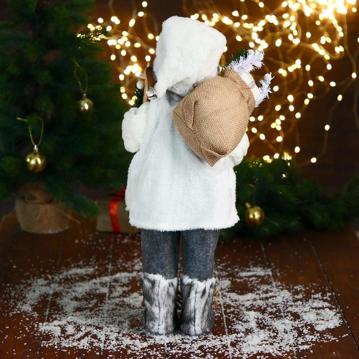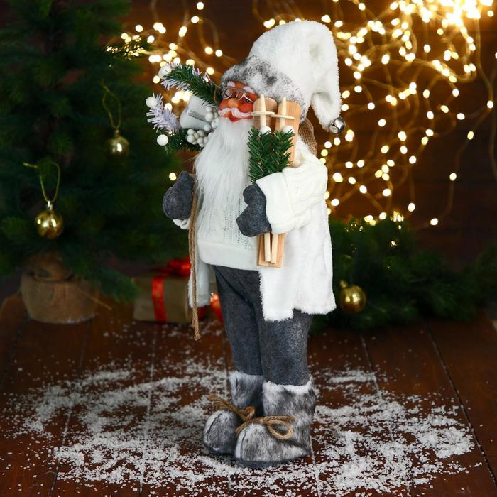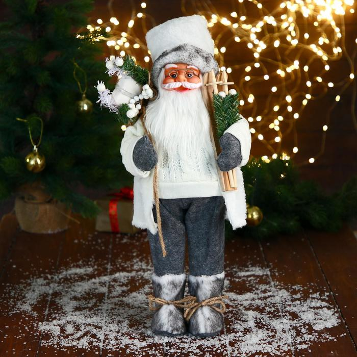 Дед Мороз "В белом свитере, с лыжами" 17х45 см