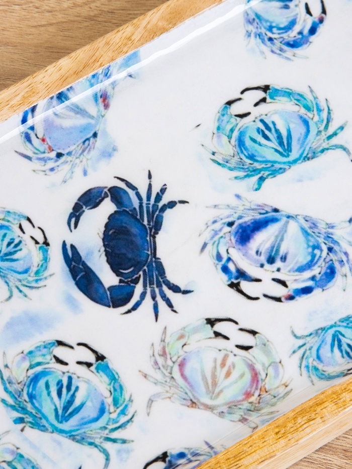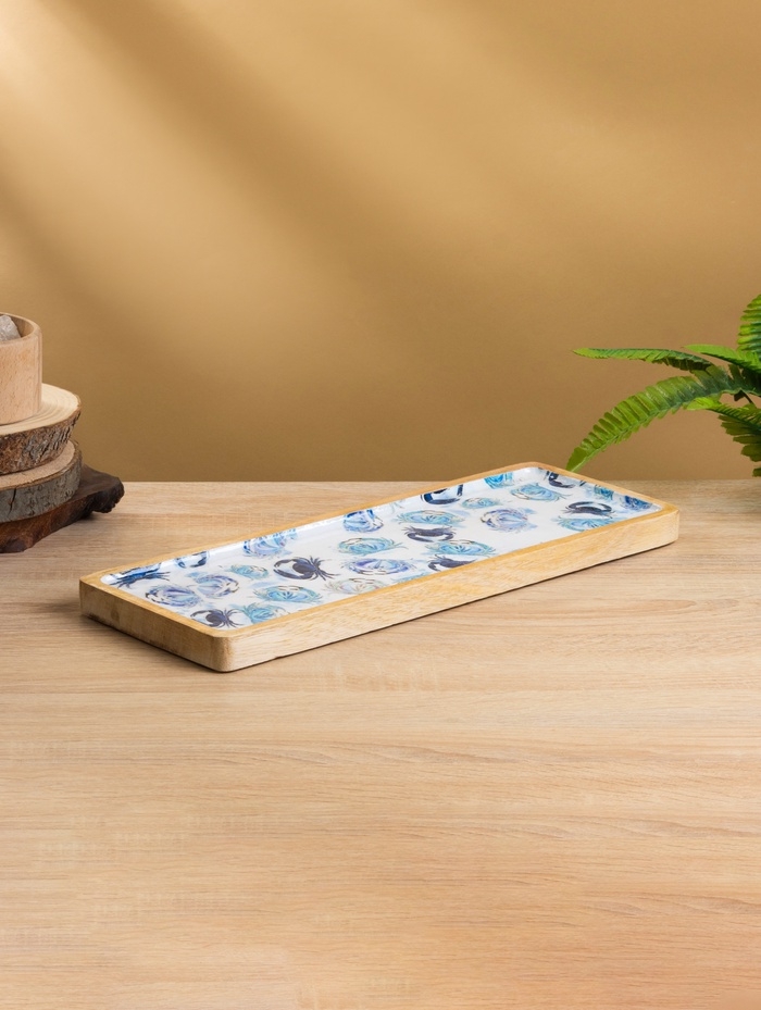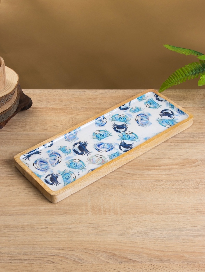 Блюдо прямоугольное "Крабы" дерево манго 41х15 см