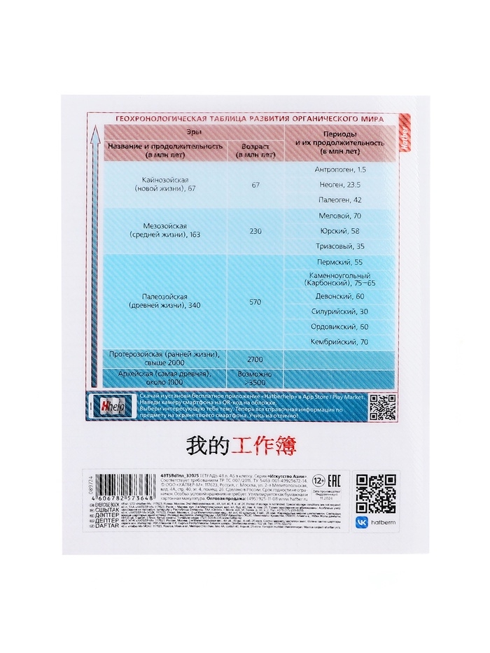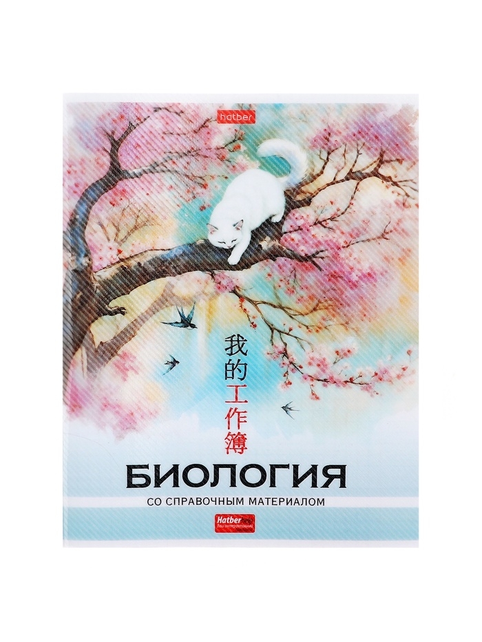 Тетрадь 48 листов в клетку «Искусство Азии» БИОЛОГИЯ, пластиковая обложка с печатью, тиснение фольгой, с интерактивным справочником, блок офс...