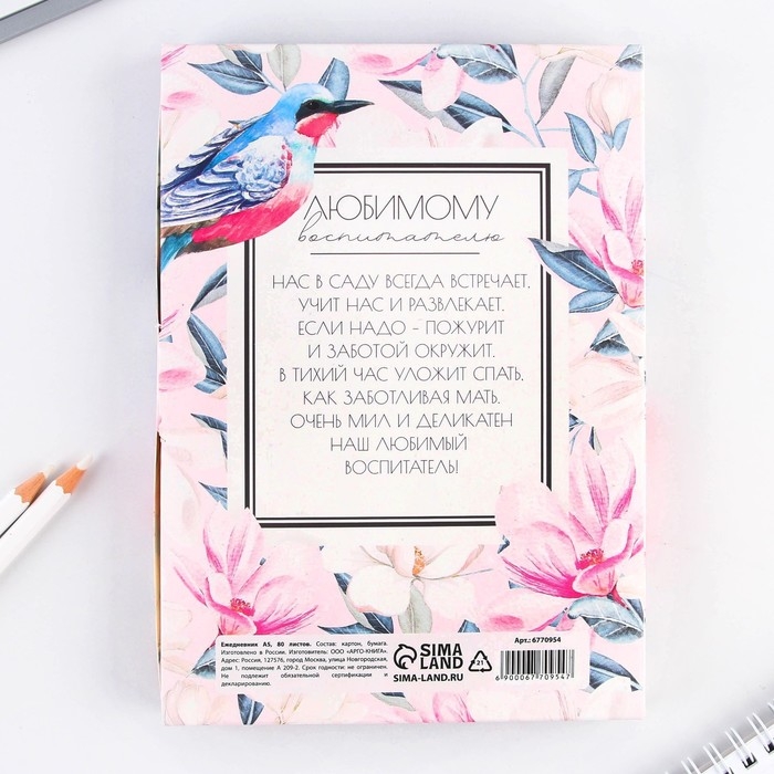 Ежедневник в подарочной коробке «Любимому воспитателю» формат А5, 80 листов, твердая обложка