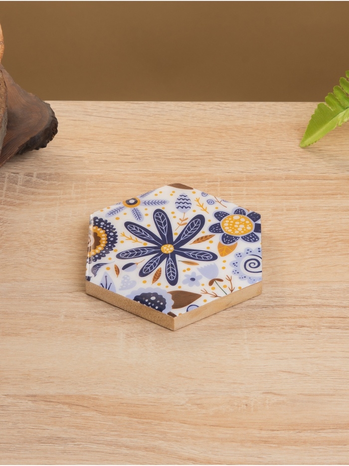 Подставка под горячее (набор 4 шт) "Васильки" дерево манго 15х13х5 см
