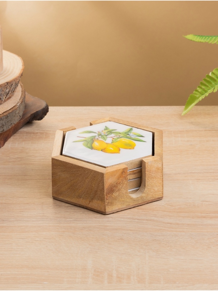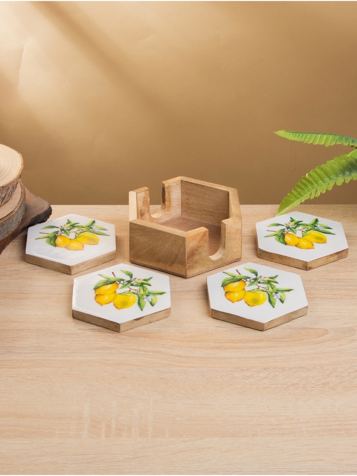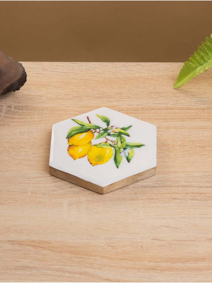 Подставка под горячее (набор 4 шт) "Лимоны" дерево манго 15х13х5 см