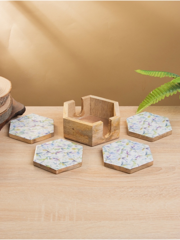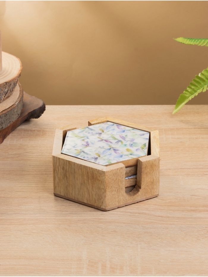 Подставка под горячее (набор 4 шт) "Оттенки сирени" дерево манго 15х13х5 см