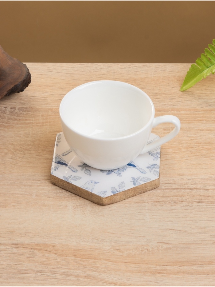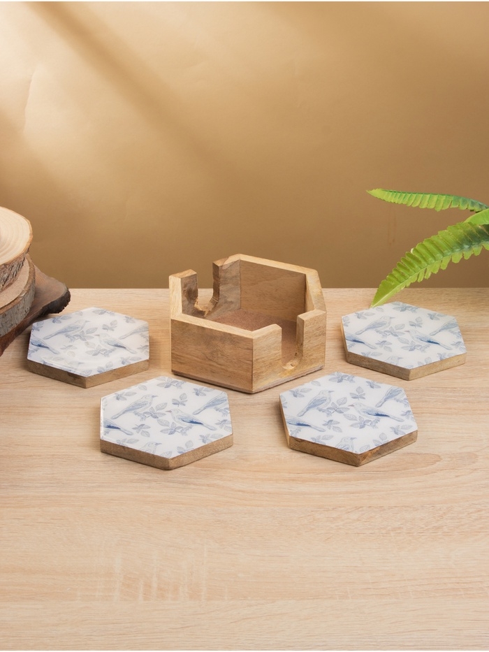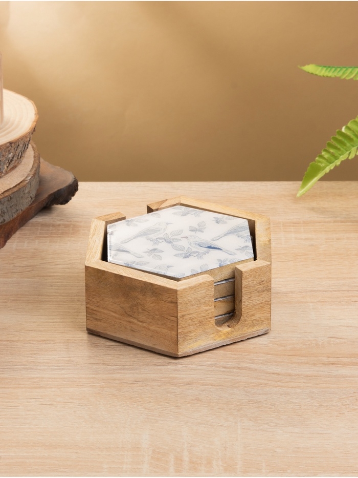 Подставка под горячее (набор 4 шт) "Синие птицы" дерево манго 15х13х5 см
