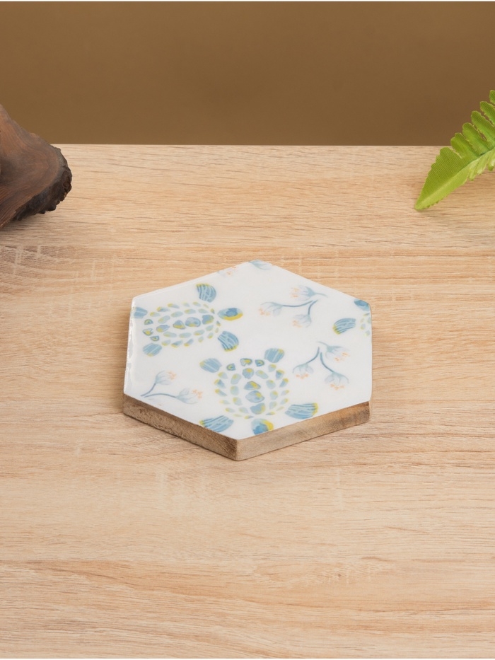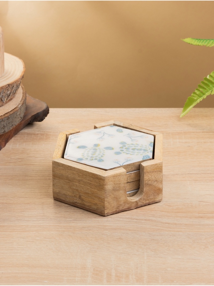 Подставка под горячее (набор 4 шт) "Черепаха и цветы" дерево манго 15х13х5 см