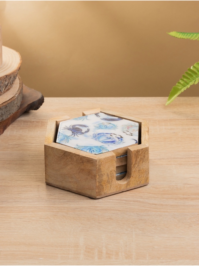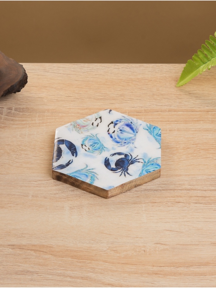 Подставка под горячее (набор 4 шт) "Крабы" дерево манго 15х13х5 см