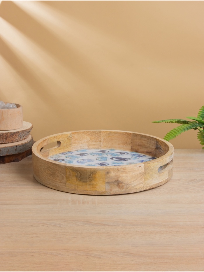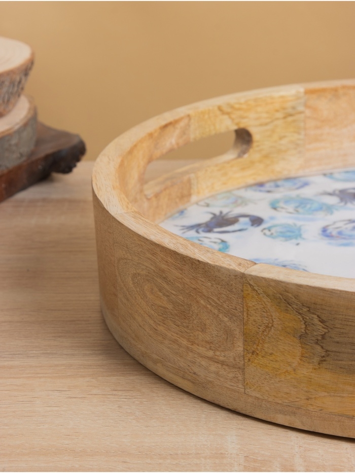 Поднос круглый с бортиками "Крабы" дерево манго 35х35х6,5 см