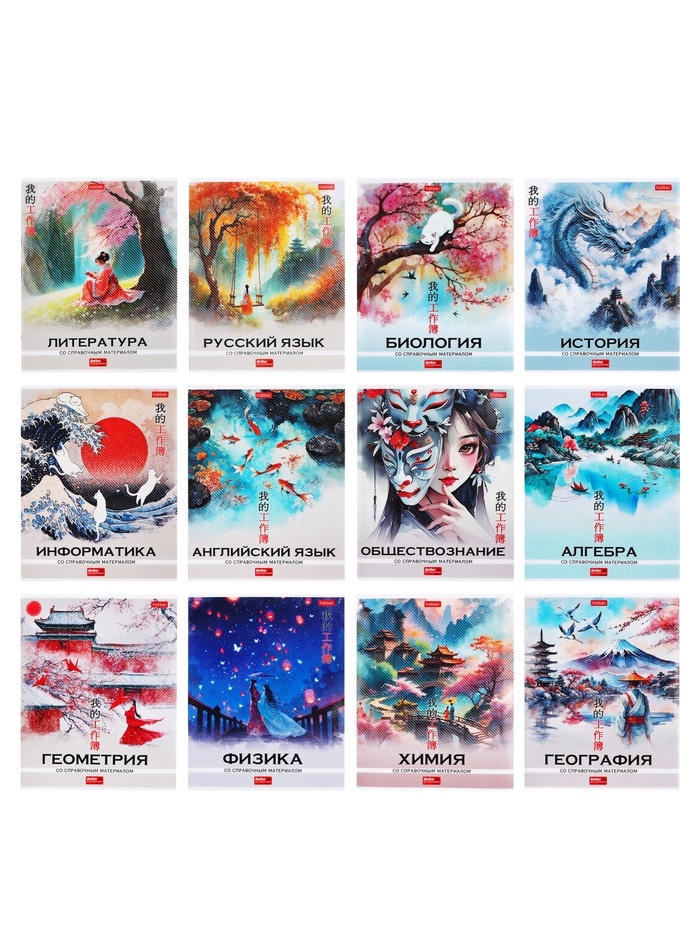 Комплект предметных тетрадей 48 листов, 12 предметов Hatber «Искусство Азии», пластиковая обложка с печатью, тиснение фольгой, с интерактивным сп...