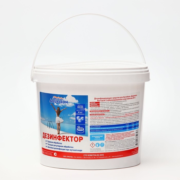 Быстрый стабилизированный хлор Aqualeon обеззараживает воду плавательных бассейнов, кроме бассейнов медицинского назначения, предназначенных для лечебных процедур или с водой специального минерального состава.